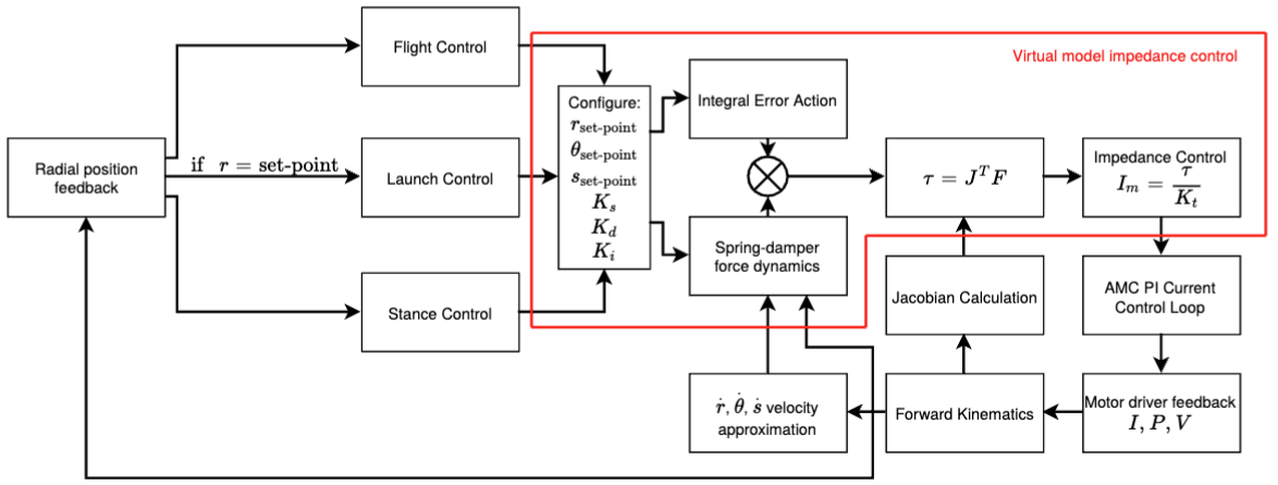 Experiments were performed in virtual model spring-damping, impact absorption, trajectory tracking, force control, and current control. Jump tests were performed investigating robustness, repeatability, and rapid acceleration control. Force control and virtual model fidelity were verified by critically analysing both theoretical simulated responses and practical data.